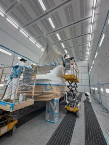 Today completed the refit and painting operations of a Princess V 53 in a painting oven on new production area of Ameglia in partnership with Eurocolor 2000